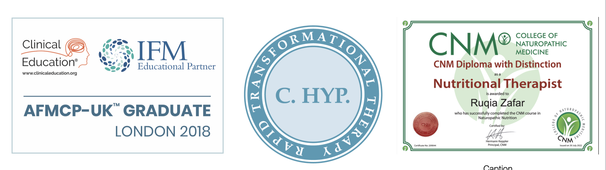 Dr Ruqia Zafar is an NHS GP, nutritional therapist and Rapid Transformational Therapy practitioner! Despite loving her work as a GP, she became concerned by the ever burgeoning burden of chronic disease and ill health that has now been accepted as the norm. She knew a different approach to health is needed that focuses on prevention and on maintaining good health rather than on managing disease. In 2018, she completed the Applying Functional Medicine to Clinical Practice (AFMCP) course and hasn’t looked back since. She now practices nutritional therapy and functional medicine and particularly enjoys working with hormonal health issues such as PCOS, endometriosis, peri-menopause and the menopause.